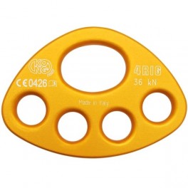 Placa multianclajes con 4 orificios inferiores concebida para organizar una estación de trabajo ordenada y crear un fácil sistema de anclajes múltiples. El orificio superior permite alojar dos conectores/mosquetones.