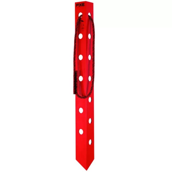 Estaca de nieve en perfil de aluminio angulado, diseñada para ofrecer un anclaje seguro en terrenos nevados. Incorpora grandes perforaciones que reducen el peso y mejoran la fijación en distintos tipos de nieve.